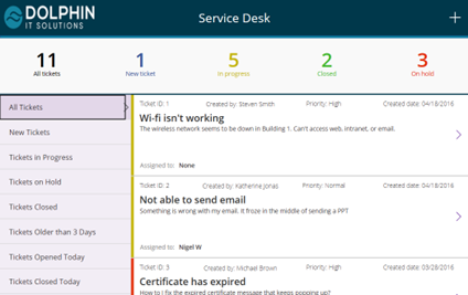 Another simple organisational solution you can implement is a service desk tool. Historically, IT departments have utilised these tools to log and resolve technical issues related to computers and networks, however, the concept extends beyond IT. Any department that deals with incoming enquiries needs to find an efficient and accurate way of dealing with the information received. While spreadsheets (them again) often fill the gap for handling this sort of requirement, PowerApps offers a more professional and streamlined alternative. The following is an example of a Helpdesk application that can be built with PowerApps: