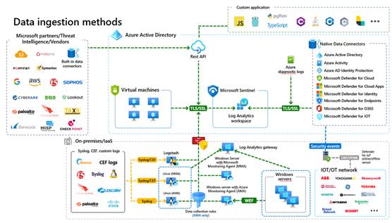On-Premises Infrastructure. You can review security event logs from your physical servers, domain controllers, Active Directory, network devices, and traditional firewalls.